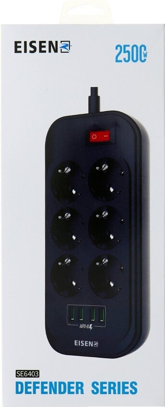 EISENZ SE6403 Stekkerdoos met 6 Stopcontacten en 4 USB-poorten