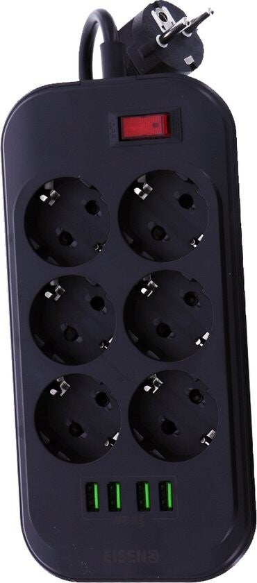 EISENZ SE6403 Stekkerdoos met USB β 6 Stopcontacten & 4 USB-poorten β Met Schakelaar